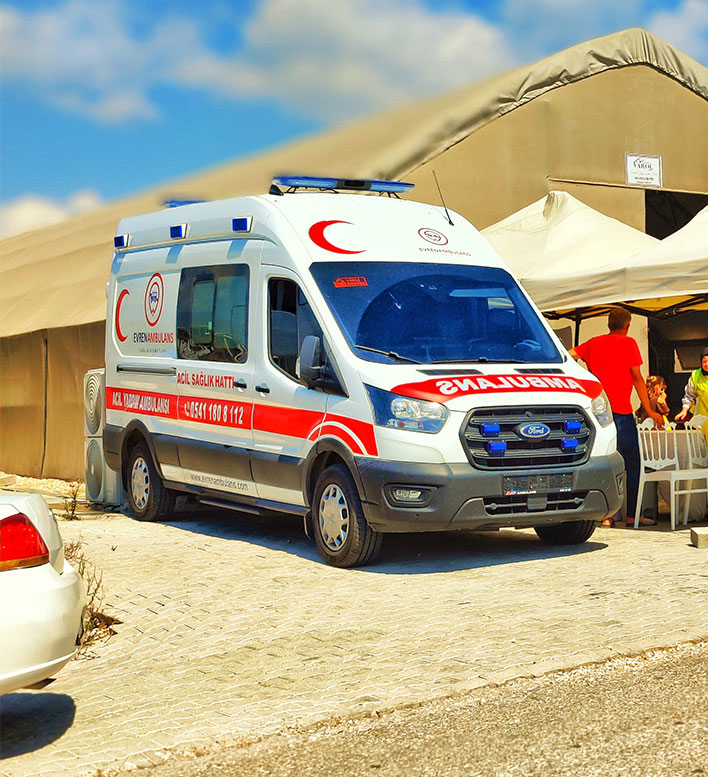 Evren Ambulans olarak, sağlık alanında profesyonel ve güvenilir bir hizmet sunma misyonuyla yola çıktık. Özel ambulans hizmetlerinde öncü olma vizyonuyla hareket ediyoruz. Yılların getirdiği deneyim ve uzmanlıkla, her türlü hasta nakli ve acil sağlık ihtiyaçlarınızı karşılamak için buradayız.